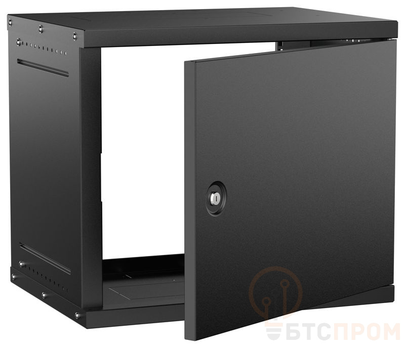 Конструкция оснащена перфорированной дверью из черного металла с замком, которая обеспечивает эффективную вентиляцию и защиту от несанкционированного доступа. Шкаф идеально подходит для монтажа в офисах, серверных комнатах, центрах обработки данных, а также в качестве точки размещения оборудования на небольших предприятиях или в учебных заведениях. Настенный способ установки экономит полезное пространство в помещении. В комплектацию входят монтажные уголки, а также съемные боковые панели для удобства обслуживания.