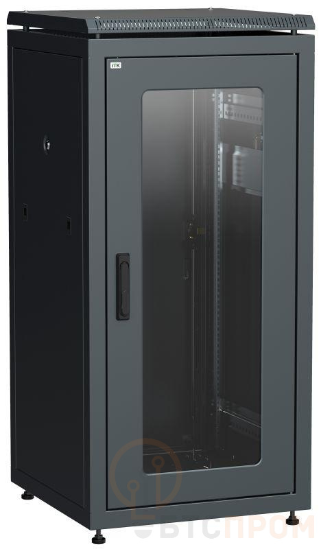 Шкаф сетевой 19дюйм LINEA N 24U 600х600мм стеклянная передняя дверь задняя металлическая черн. ITK LN05-24U66-GM