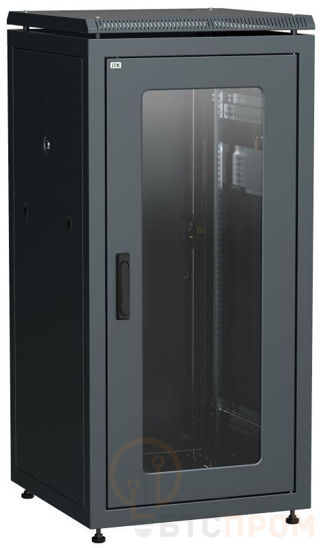 Шкаф сетевой 19дюйм LINEA N 24U 600х800мм стеклянная передняя дверь задняя металлическая черн. ITK LN05-24U68-GM