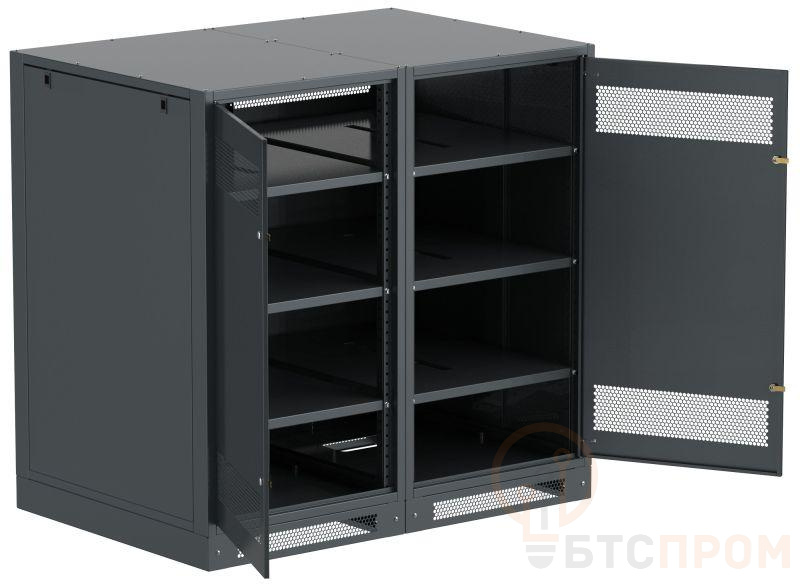 Шкаф аккумуляторный серии LINEA B предназначен для размещения и защиты от несанкционированного доступа аккумуляторных батарей (АБ). Шкафы LINEA B повышенной прочности со сварным каркасом и усиленными полками позволяют размещать АБ до 500 кг. на полке. Вместе со шкафом поставляются полки. Количество полок в комплекте зависит от высоты шкафа. Каркас позволяет размещать полки с шагом 30мм. В полках предусмотрены вырезы для удобства соединения АБ. В нижней части корпуса предусмотрена плата для установки предохранителя-выключателя-разъединителя ПВР. Шкаф аккумуляторный серии LINEA B двухсекционный поставляется на цоколе высотой 100мм. и состоит их двух секций. В месте эксплуатации требуется соединение секций метизами из комплекта поставки. Все металлические части шкафа LINEA B заземлены. В комплект включены РЫМ-болты для удобства перемещения шкафа. Вентиляционные отверстия в дверях и задней панели обеспечивают циркуляцию воздуха. Для преобразования шкафа аккумуляторного серии LINEA B в стеллаж требуется снять заднюю стенку, крышку, дверь(и), боковые стенки. Широкий ассортимент типоразмеров позволяет подобрать оптимальный шкаф под требуемое количество АБ.