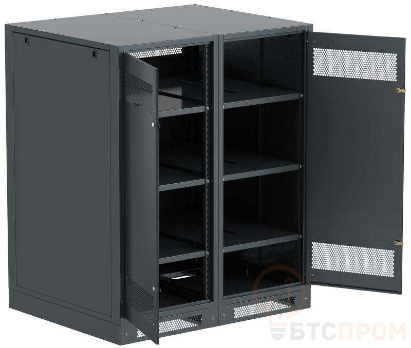 Шкаф аккумуляторный серии LINEA B предназначен для размещения и защиты от несанкционированного доступа аккумуляторных батарей (АБ). Шкафы LINEA B повышенной прочности со сварным каркасом и усиленными полками позволяют размещать АБ до 500 кг. на полке. Вместе со шкафом поставляются полки. Количество полок в комплекте зависит от высоты шкафа. Каркас позволяет размещать полки с шагом 30мм. В полках предусмотрены вырезы для удобства соединения АБ. В нижней части корпуса предусмотрена плата для установки предохранителя-выключателя-разъединителя ПВР. Шкаф аккумуляторный серии LINEA B двухсекционный поставляется на цоколе высотой 100мм. и состоит их двух секций. В месте эксплуатации требуется соединение секций метизами из комплекта поставки. Все металлические части шкафа LINEA B заземлены. В комплект включены РЫМ-болты для удобства перемещения шкафа. Вентиляционные отверстия в дверях и задней панели обеспечивают циркуляцию воздуха. Для преобразования шкафа аккумуляторного серии LINEA B в стеллаж требуется снять заднюю стенку, крышку, дверь(и), боковые стенки. Широкий ассортимент типоразмеров позволяет подобрать оптимальный шкаф под требуемое количество АБ.
