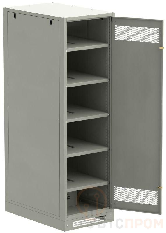 Шкаф аккумуляторный серии LINEA B предназначен для размещения и защиты от несанкционированного доступа аккумуляторных батарей (АБ). Шкафы LINEA B повышенной прочности со сварным каркасом и усиленными полками позволяют размещать АБ до 500 кг. на полке. Вместе со шкафом поставляются полки. Количество полок в комплекте зависит от высоты шкафа. Каркас позволяет размещать полки с шагом 30мм. В полках предусмотрены вырезы для удобства соединения АБ. В нижней части корпуса предусмотрена плата для установки предохранителя-выключателя-разъединителя ПВР. Шкаф аккумуляторный серии LINEA B односекционный поставляется на цоколе высотой 100мм. Все металлические части шкафа LINEA B заземлены. В комплект включены РЫМ-болты для удобства перемещения шкафа. Вентиляционные отверстия в дверях и задней панели обеспечивают циркуляцию воздуха. Для преобразования шкафа аккумуляторного серии LINEA B в стеллаж требуется снять заднюю стенку, крышку, дверь(и), боковые стенки. Широкий ассортимент типоразмеров позволяет подобрать оптимальный шкаф под требуемое количество АБ.