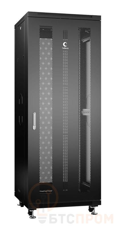 Шкаф монтажный телекоммуникационный напольн. ND-05C-32U60/60-BK 19дюйм 32U 600х600х1610мм для распределит. и серверн. оборудования; передн. и задн. перфорир. двери ручка с замком RAL 9004 черн. Cabeus 8551c