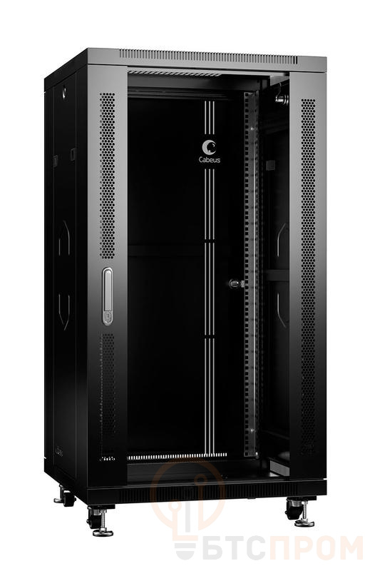 Шкаф монтажный телекоммуникационный напольный SH-05C-22U60/100-BK 19дюйм для распред. и серверн. оборудования 22U 600х1000х1166мм передн. стеклян. и задн. сплошн. метал. двери ручка с замком черн. (RAL 9004) Cabeus 8540c