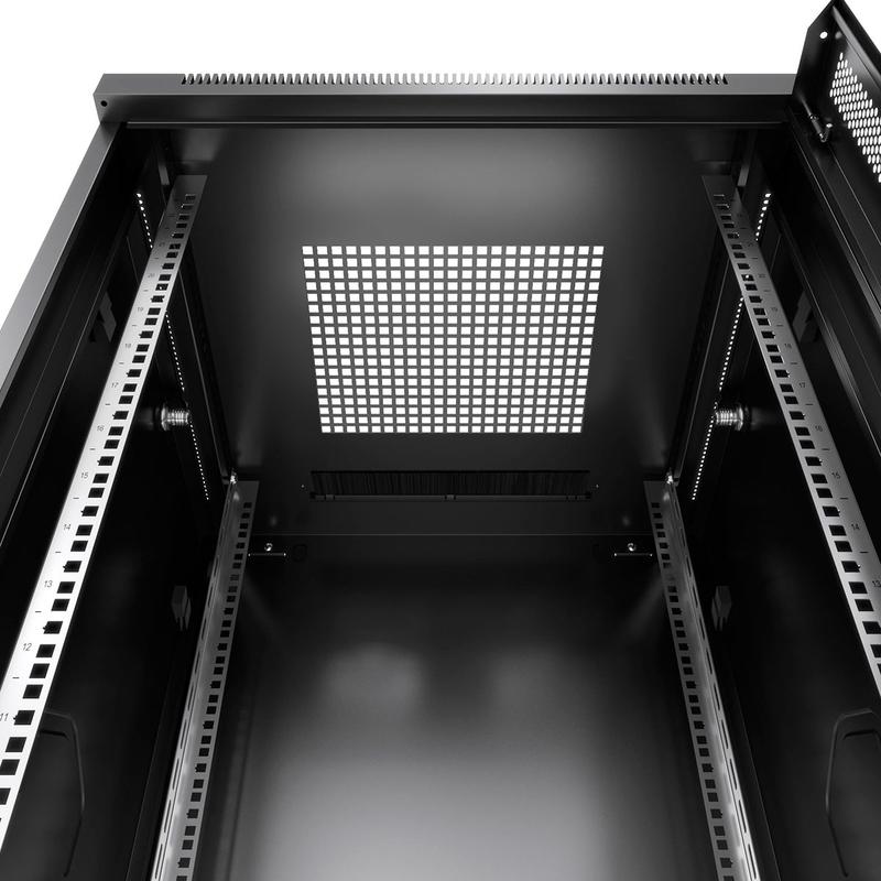 Шкаф монтажный телекоммуникационный напольный SH-05C-22U60/60-BK 19дюйм 22U 600х600х1166мм (ШхГхВ) для распред. и серверного оборудования перед. стеклянная и задняя сплошная метал. двери ручка с замком черн. Cabeus 8556c