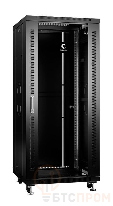 Шкаф монтажный телекоммуникационный напольный SH-05C-27U60/60-BK 19дюйм для распред. и серверн. оборудования 27U 600х600х1388мм передн. стеклян. и задн. сплошн. метал. двери ручка с замком черн. (RAL 9004) Cabeus 8557c