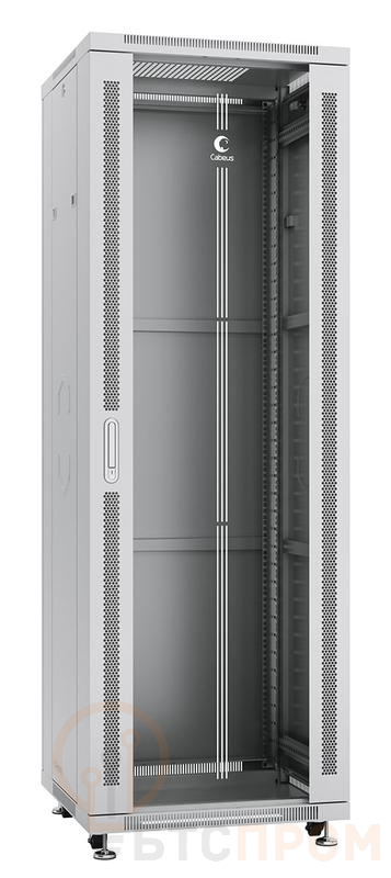 Шкаф монтажный телекоммуникационный напольный SH-05C-37U60/100 19дюйм для распред. и серверн. оборудования 37U 600х1000х1833мм передн. стеклян. и задн. сплошн. метал. двери ручка с замком сер. (RAL 7035) Cabeus 7642c