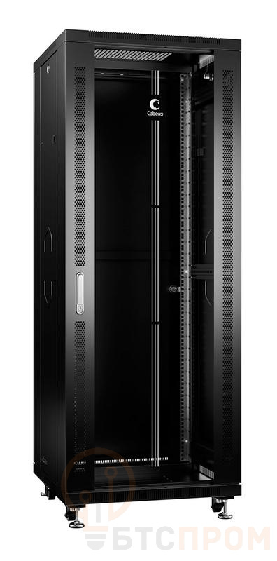 Шкаф монтажный телекоммуникационный напольный SH-05C-37U60/80-BK 19дюйм для распред. и серверн. оборудования 37U 600х800х1833мм передн. стеклян. и задн. сплошн. метал. двери ручка с замком черн. (RAL 9004) Cabeus 8575c