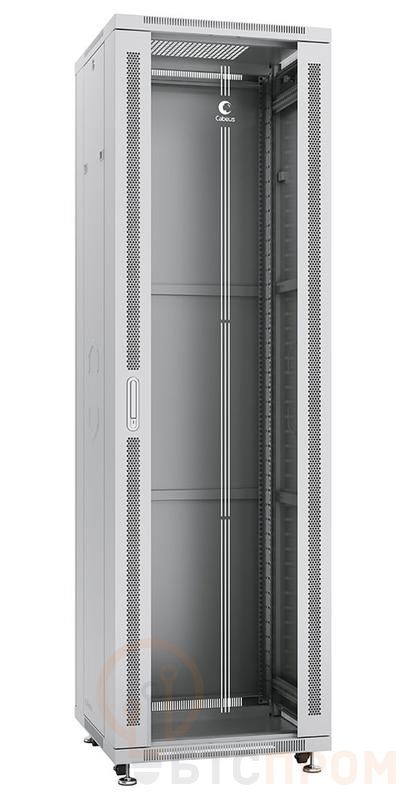 Шкаф монтажный телекоммуникационный напольный SH-05C-42U60/80 19дюйм 42U 600х800х2055мм для распределит. и серверн. оборудования передн. стеклян. и задн. сплошн. метал. двери ручка с замком сер. Cabeus 7052c