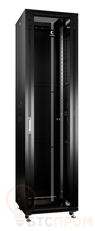 Шкаф монтажный телекоммуникационный напольный SH-05C-47U60/80-BK 19дюйм для распред. и серверн. оборудования 47U 600х800х2277мм передн. стеклян. и задн. сплошн. метал. двери ручка с замком черн. (RAL 9004) Cabeus 8578c