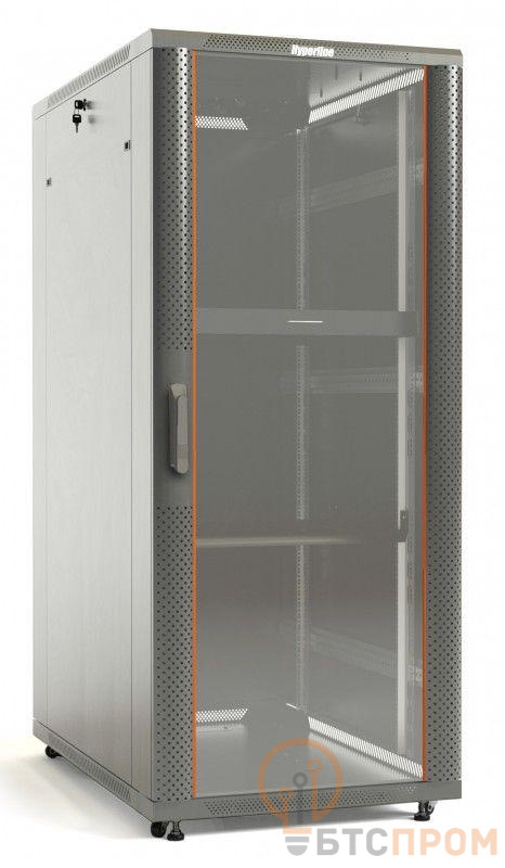 Шкаф напольный 19дюйм 37U 1833х800х800мм (ВхШхГ) передняя дверь стеклянная задняя дверь сплошная ручка с замком 2 вертикальных кабельных организатора (RAL 7035) (разобранный) TTB-3788-AS-RAL7035 сер. Hyperline 451951