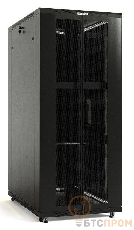 Шкаф напольный 19дюйм 37U 1833х800х800мм (ВхШхГ) передняя и задняя распашные перфор. двери (75%) ручка с замком 2 вертикальных кабельных организатора TTB-3788-DD-RAL9004 черн. Hyperline 395997