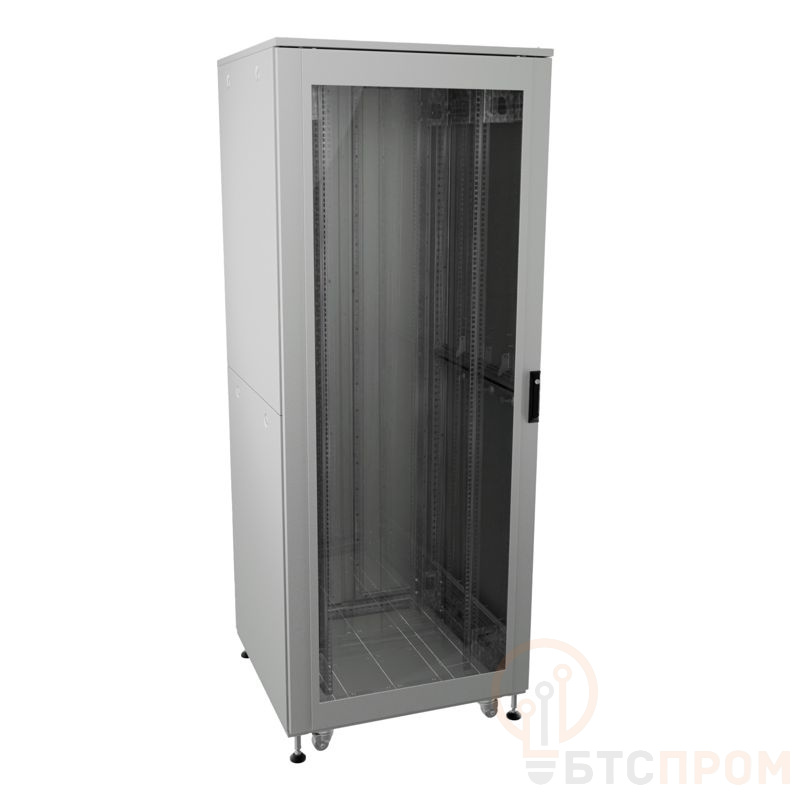 Шкаф поставляется в разобранном виде для удобства транспортировки. В базовой комплектации: крыша с технологической вырубкой для кабельных вводов, передняя стеклянная дверь и задняя сплошная металлическая дверь. Внутренняя монтажная глубина 800 мм и высота 47U (2060 мм) позволяют разместить большое количество стоечного оборудования. Стандартная ширина 600 мм обеспечивает удобство монтажа и вентиляции.