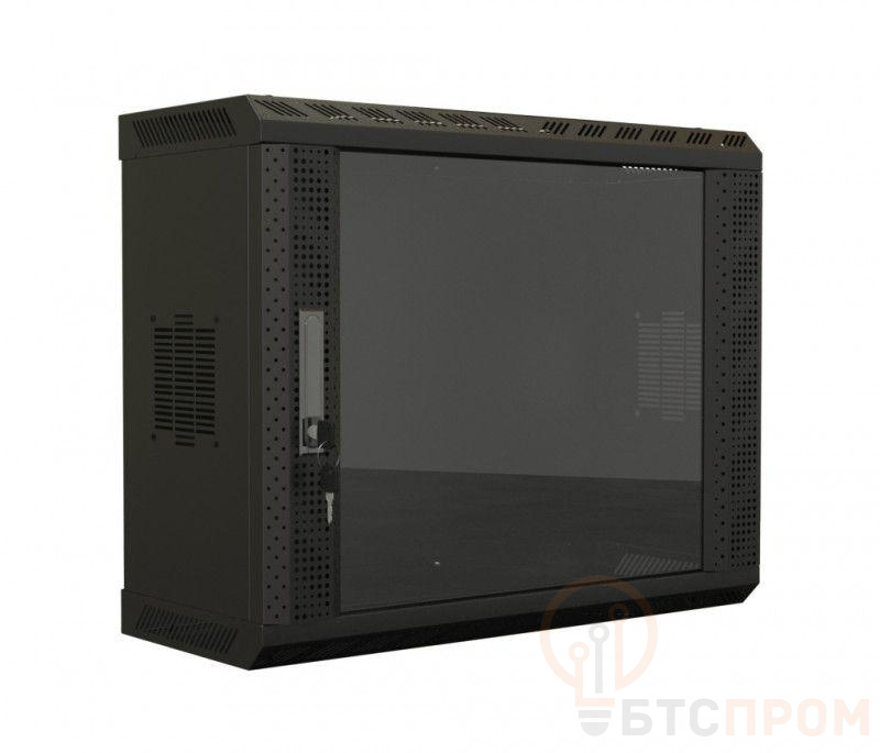 Шкаф настенный (19дюйм) 15U 740х600х250 со стеклянной дверью несъемные боковые панели (RAL 9004) (собранный) TWS-1525-GP-RAL9004 черн. Hyperline 447457