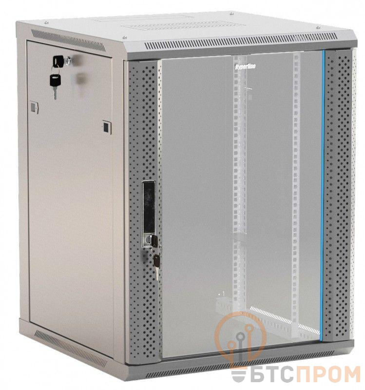 Шкаф настенный (19дюйм) 6U 367х600х600мм стеклянная дверь с перфорацией по бокам ручка с замком (RAL 7035) (разобранный) TWB-0666-GP-RAL7035 сер. Hyperline 451988