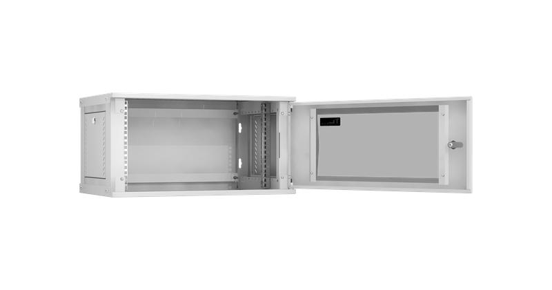 Настенные шкафы серии Lite (TWI) — это рациональное решение для размещения малых объемов телекоммуникационного оборудования, внутри жилых, офисных и производственных помещений. Настенные шкафы используют там, где применение напольных шкафов нецелесообразно. Например, при ограниченной площади помещения или при организации ЛВС с небольшим количеством рабочих мест. Особенностью настенных шкафов серии TWI является: надежная сборная конструкция, для удобства траспортировки, наличие съемных боковых стенок, двери с большим углом открытия позволяют при необходимости осуществлять доступ к оборудованию с трех сторон. Сборно-разборная конструкция шкафа, состоящая из малого набора конструктивных элементов обеспечивает надежный конструктив и простоту сборки. Крепление шкафа к стене осуществляется через монтажные отверстия в задней стенке шкафа. (Крепеж не входит в комплект поставки). Дверь шкафа снабжена замком и может быть выполнена из стального листа с перфорацией или со вставкой из тонированного в массе стекла. Имеется возможность навесить дверь с правой или с левой стороны. Угол открытия двери — 180 градусов. Для дополнительного удобства монтажа и обслуживания устанавливаемого оборудования, конструкцией предусмотрены легкосъемные боковые стенки, в закрытом положении фиксируются замками. Для установки оборудования стандарта 19", шкаф оснащен одной парой монтажных направляющих в комплекте с юнитовой наклейкой (шкаф глубиной 600 мм оснащается двумя парами монтажных направляющих). Глубину установки оборудования на монтажных направляющих внутри шкафа можно изменять с шагом 25 мм. Перфорация шкафа обеспечивает хорошую вентиляцию установленного оборудования. Возможна установка вентиляторного блока в крышу и основание шкафа, для этого предусмотрены выламываемые заглушки. В шкаф глубиной 350 мм устанавливаются вентиляторные блоки с 1-м вентилятором, а в шкаф глубиной 450 и 600 мм устанавливаются вентиляторные блоки с 2-я вентиляторами. Имеется по 1-му кабельному вводу в крыше и в основании шкафа, выполнены они в виде прямоугольных выламываемых заглушек 270х56 мм. Все токопроводящие части шкафа заземлены между собой. Антикоррозионное покрытие выполнено ударопрочной порошковой краской. Шкаф выполнен в системе несущих конструкций серии 482,6 мм ГОСТ 28601-90 (19-дюймовому стандарту IEC 297). Максимальная допустимая распределенная нагрузка на шкаф серии TWI составляет 40 кг. Степень защиты шкафа составляет IP 20. Шкаф поставляется в разобранном виде, в одной коробке.