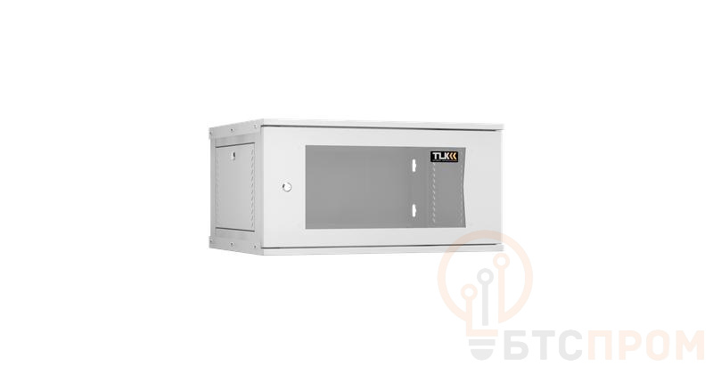 Шкаф настенный 19дюйм 6U стекл. дверь Ш600хВ303хГ450мм 1 пара монтаж. направляющих разборн. сер. TLK TWI-066045-R-G-GY