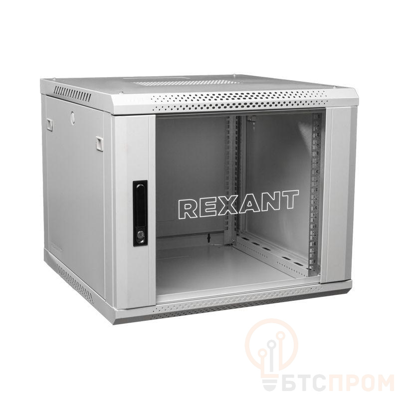Шкаф настенный 19дюйм 9U 600х600х501 дверь стекло; метал. задн. стенка; боков. съемные стенки RAL7035 Rexant 04-0966-111