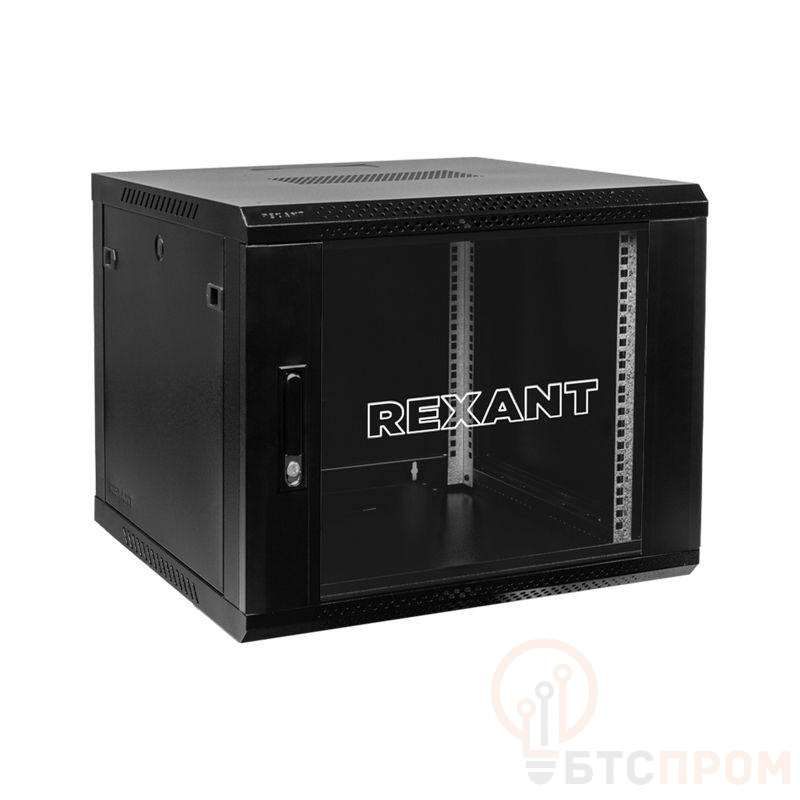 Шкаф настенный 19дюйм 9U 600х600х501 дверь стекло; метал. задн. стенка; боков. съемные стенки RAL9005 Rexant 04-0966-112