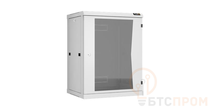 Шкаф настенный разборный 19дюйм 15U стекл. дверь Ш600хВ770хГ450мм 2 пары монтажных направляющих сер. TLK TWC-156045-R-G-GY