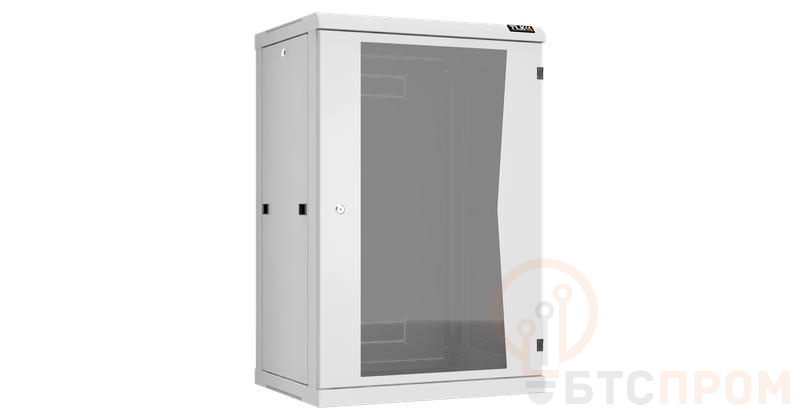 Шкаф настенный разборный 19дюйм 18U стекл. дверь Ш600хВ904хГ450мм 2 пары монтажных направляющих сер. TLK TWC-186045-R-G-GY
