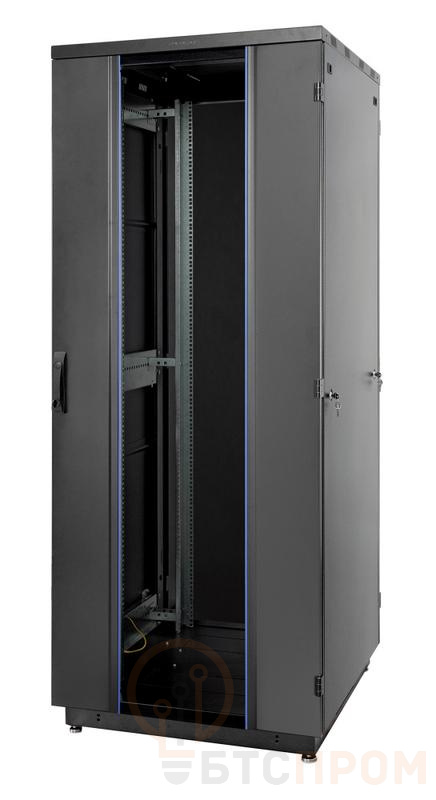 Шкаф Racknet S3000 47U 800х800 передняя дверь стекло 1-ств. задняя дверь метал. 2-ств. черн. Eurolan 60F-47-88-31BL
