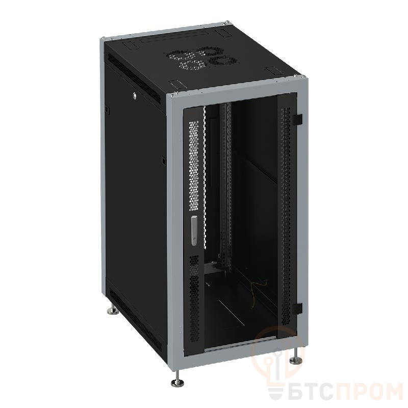 Конструкция шкафа выполнена из холоднокатаной стали, обладает высокой прочностью и устойчивостью. Габаритные размеры 600x1000 мм обеспечивают удобный доступ к оборудованию для монтажа и обслуживания. Модель оснащена перфорированными дверьми для эффективной вентиляции, боковые панели легко снимаются. В комплектацию входят монтажные стойки с резьбовыми гайками, регулируемые опоры для выравнивания конструкции на неровном полу.