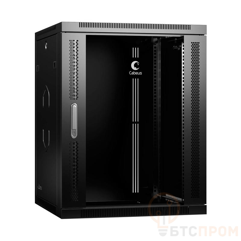 Шкаф телекоммуникационный настенный разобранный SH-05F-15U60/45-R-BK 19дюйм 15U 600х450х769мм дверь стекло черн. (RAL 9004) Cabeus 10771c