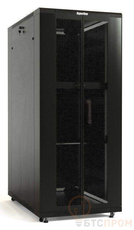 Шкаф TTB-4781-DD-RAL9004 напол. 19дюйм 47U 2277х800х1000мм передн. и задн. распашные перфор. двери (75%) ручка с замком крыша нового типа (RAL 9004) (разобранный) черн. Hyperline 392700