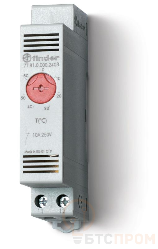 термостат щитовой для включения охлаждения диапазон температур -20… + 40град. с 1no 10а модульный 17.5мм ip20 finder 7t8100002301 от BTSprom.by