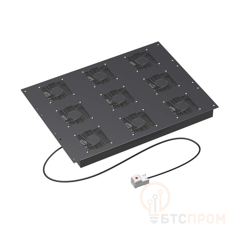 Блоки вентиляторов для установки в крышу 19" IT-корпуса ДКС серии CQE применяются для организации отвода нагретого воздуха из объема IT-корпуса вверх. Блоки вентиляторов поставляются как без термостата, так и с ним. Термостат включает блок при достижении воздухом верхнего порогового значения температуры и отключает вентиляторы при охлаждении воздуха до нижнего порога температуры. Модуль предназначен для установки в шкафы шириной 800 мм. 9 вентиляторов. Комплект поставки: шнур питания 1,8 м, разъемы Schuko и IEC C13, крепеж (закладные гайки, шайбы и винты М6х16). Цвет - черный, RAL 9005.