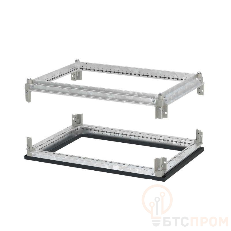 Комплект оцинкованной рамы крыши и дна для соединения с вертикальными стойками и сборки напольных шкафов CQE N шириной 600 и глубиной 600 мм. Юбка дна окрашена в черный цвет RAL9005.