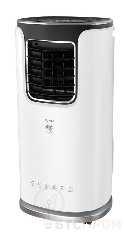 Мобильные кондиционеры FUNAI серии JASMINE – это инновационные технологии, современное производство и актуальные дизайнерские решения. Инженеры и дизайнеры FUNAI создали серию мобильных кондиционеров JASMINE, высокая эффективность и удобный функционал которых открывает пользователю новые возможности комфорта. Мобильные кондиционеры серии JASMINE имеют 3 режима работы, 4 скорости вентилятора, автоматические жалюзи, таймер, ночной режим и функцию блокировки от детей. Энергоэффективность класса А гарантирует низкое электропотребление во время работы. Сенсорная панель управления TOUCH SCREEN дает возможность интуитивно настроить необходимы параметры. Скругленная форма корпуса, колесики и полный комплект аксессуаров делает установку максимально удобной, простой и быстрой.