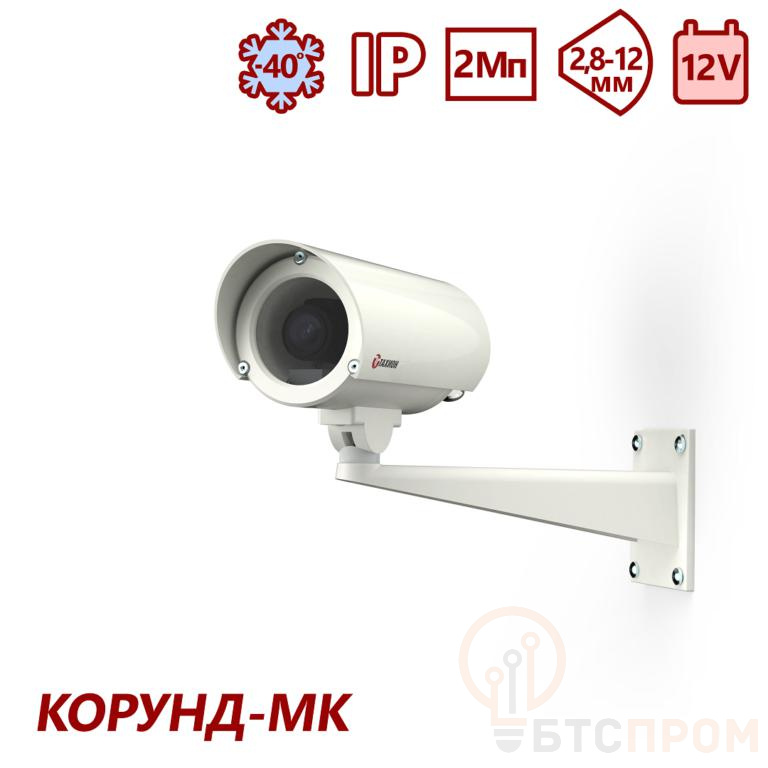 Компактная всепогодная видеокамера серии "Корунд-МК". Разрешение 1920х1080 (Full HD). Матрица 1/2,8” CMOS. Чувствительность 0,001лк/0,0001лк. Объектив: 2,8-12 мм. АРД. Электромеханический ИК-фильтр. Поддержка ONVIF. Формат сжатия: H.265+, H.265, H.264, MJPEG. Скорость потока: до 30 кадров/сек. Одновременная передача двух потоков. 3D-DNR. Класс защиты IP66/IP68. Диапазон рабочих температур: - 40?С ? + 50?С. Напряжение питания: 12 В DС ±10%. Потребляемая мощность 5Вт. В комплекте кронштейн крепления на стену.