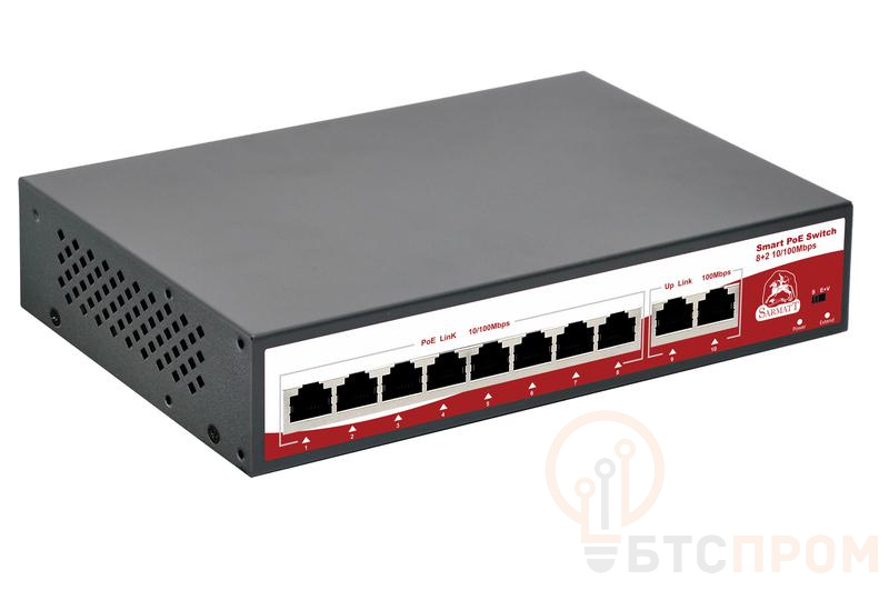 10 портовый неуправляемый РоЕ коммутатор; 8 портов PoE 10/100 Мбит/с (до 30 Вт на порт) 2 порта UpLink 10/100 Мбит/с; IEEE 802.3af/IEEE 802.3at; Расстояние до потребителя PoE до 250м (режим Vlan); Бюджет РОЕ: 120 Вт; Таблица MAC-адресов: 1K; Питание: 100-240В; Размеры: 200мм*118мм*44мм.