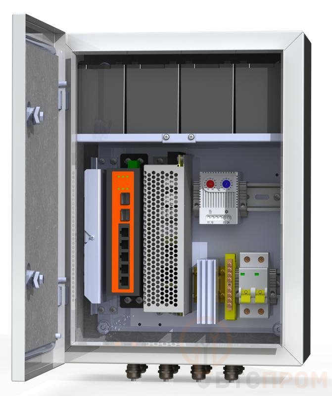 Термошкаф коммутационный 4хPoE 2хSFP 4хSC АКБ 4х12В 7А/ч IP66 300х400х210мм 6 УТП 4КУ AКБ 7А Mastermann 00-00015651