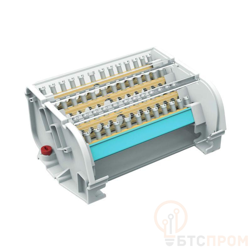 Предназначен для структурированного подключения отводных линий, разведения входящего проводника на несколько потребителей или участков. Позволяет создать упорядоченные системы распределения в электрощитах. Корпус блока выполнен из не поддерживающего горение полиамида PA6.6 и 4-х токоведущих шин в блоках 160 А, представляющие собой бруски из латуни с 13-ю отверстиями, в которые вставляются провода и зажимаются винтом. Избежать случайного прикосновения к токоведущим частям позволяет защитный экран на корпусе блока. Наличие задней крышки для предотвращения контакта с DIN-рейкой или металлической поверхностью сзади.