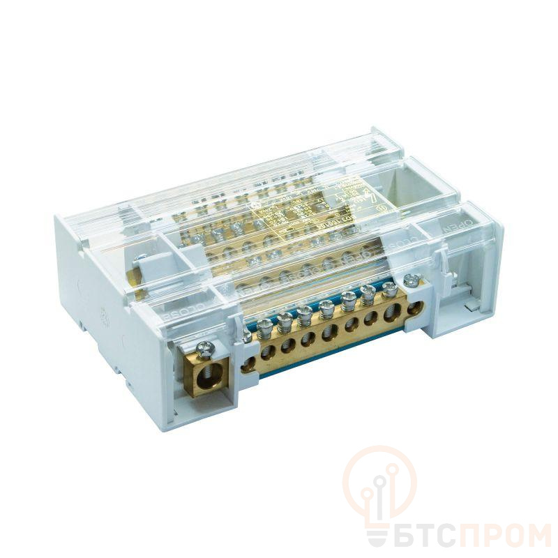 Блок распределительный с выносной клеммой предназначен для структурированного подключения отводных линий, разведения входящего проводника на несколько потребителей или участков. Позволяет создать упорядоченные системы распределения в электрощитах. Корпус блока выполнен из не поддерживающего горение полиамида PA6.6 и 4-х токоведущих шин в блоках 160 А, представляющие собой бруски из латуни с 10-ю отверстиями, в которые вставляются провода и зажимаются винтом. Избежать случайного прикосновения к токоведущим частям позволяет защитный экран на корпусе блока. Наличие задней крышки для предотвращения контакта с DIN-рейкой или металлической поверхностью сзади. Отличительная особенность - вынесенное подключение фидеров.
