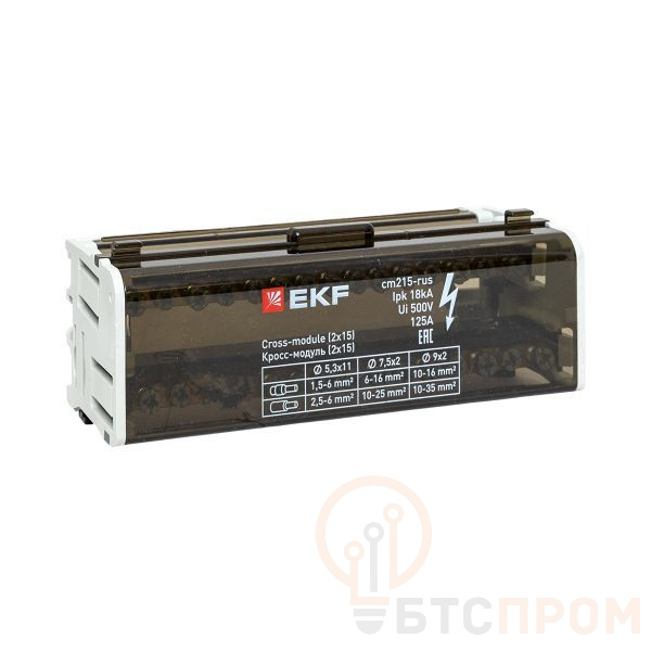 Кросс-модуль EKF CM215-RUS (2х15) на 125А — это компактное и надежное решение для организации распределения питания и управления цепями в низковольтных распределительных устройствах. Устройство монтируется на DIN-рейку 35 мм и объединяет в одном корпусе двухполюсные автоматические выключатели и нулевую шину, что значительно экономит пространство в щите и упрощает монтаж.