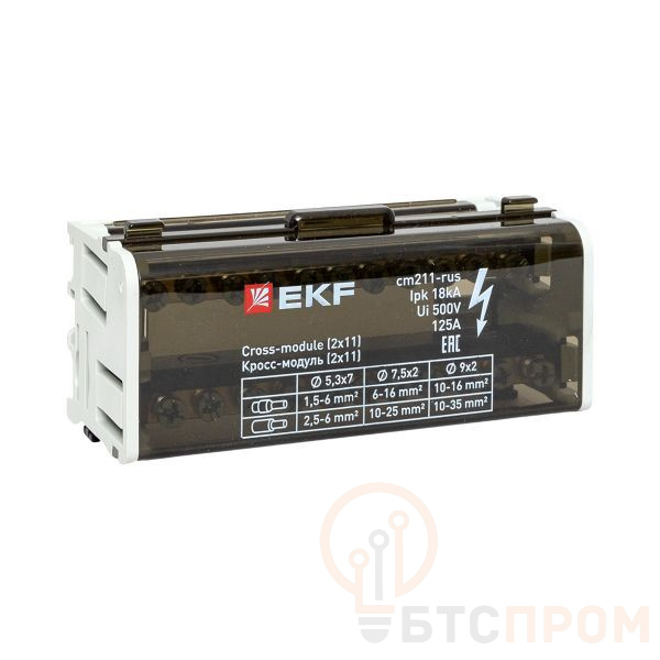 Кросс-модуль EKF CM211-RUS (2x11) на 125А — это надежный и компактный распределительный блок, предназначенный для организации электропитания и коммутации цепей в низковольтных распределительных устройствах.