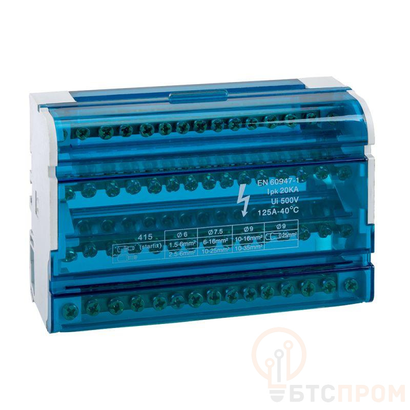Шины нулевые в корпусе с креплением на DIN-рейку служат для электрического и механического соединения проводников в цепях переменного и постоянного тока с номинальным напряжением до 400 В. Шины применяются в электрощитах для подсоединения нулевых рабочих и нулевых защитных проводников. Номинальный ток In (А): 125