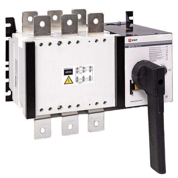 Устройство АВР торговой марки EKF предназначено для обеспечения резервным электроснабжением нагрузки, подключенной к системе электрообеспечения, имеющей основной и резервный вводы. Устройство АВР автоматически подключает резервную линию питания в случае пропадания напряжения на основной линии. Устройство АВР выполнено в виде моноблока и состоит из контактного блока и блока управления. На блоке управления имеется рычаг ручного переключения, замковый механизм перевода в ручной или автоматический режимы управления и запорный механизм, обеспечивающий блокировку переключения устройства АВР. АВР ТСР1 работает только по схеме электросеть-электросеть. Устройство АВР ТСР1 работает по схеме электросеть-электросеть. Для работы в режиме электросеть-генератор нужно подключить ДГУ к соответствующим контактам. Также контроль наличия напряжения осуществляется только по фазе А, не рекомендуется использовать данное устройство при необходимости контроля всех трёх фаз