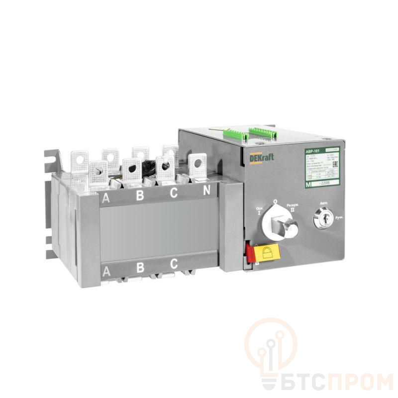 Ввод резерва автоматический АВР АВР-102 4п 100А 10кА на реверс. выкл.-разъед. с мотор. приводом DEKraft 42036DEK
