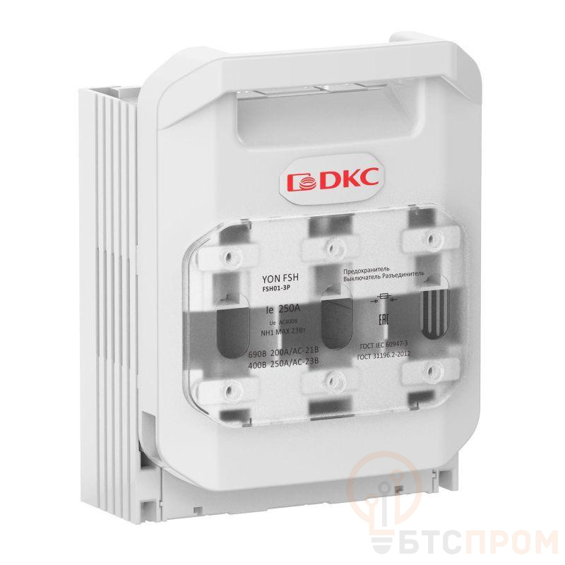 Выключатель горизонтальный предохранитель разъединитель 250А 3P крепление на монтажную плату DKC FSH01-3P