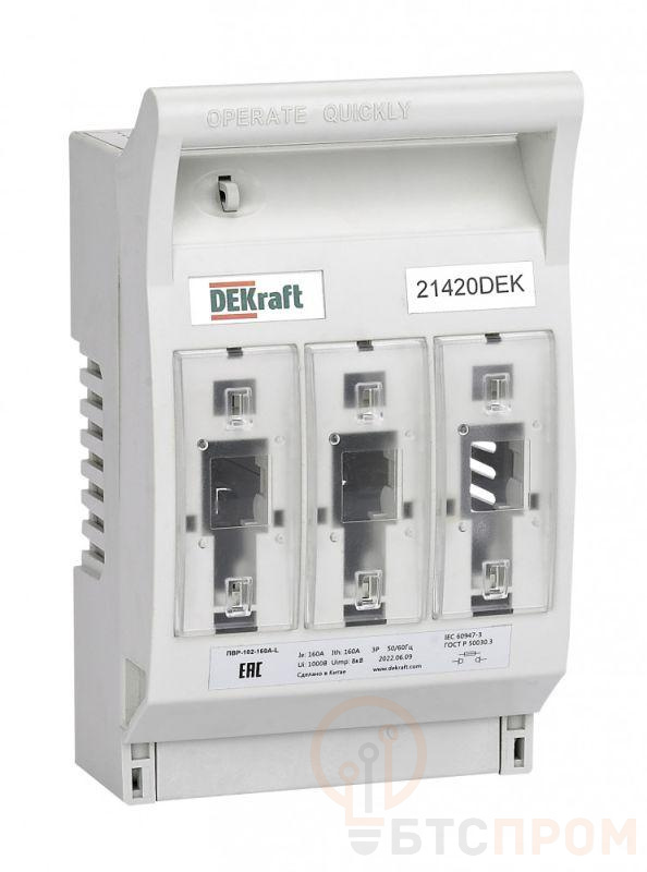 Выключатель-разъединитель-предохранитель ПВР горизонт. 160А 3ф отключ. 1НО+1НЗ ПВР-102 DEKraft 21425DEK