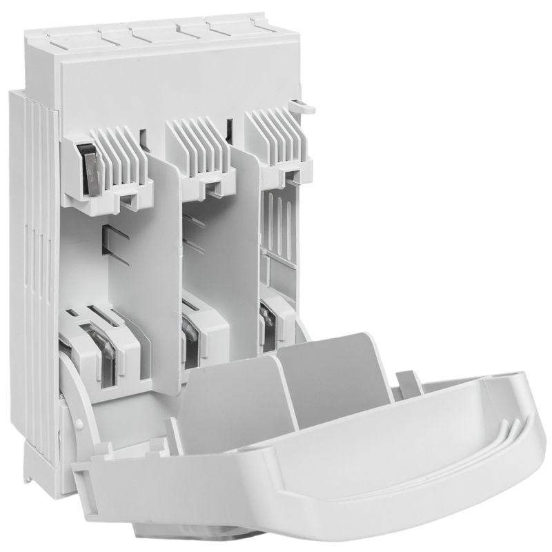 Выключатели-разъединители УВРЭ v2 с дополнительным контактом (NO+NC) откидного типа под предохранители ППН EKF (далее - УВРЭ v2) предназначены для ручного включения-отключения и для защиты от коротких замыканий и перегрузки цепей переменного тока номинальным напряжением до 690В частотой 50Гц (предохранители в комплект поставки не включены). Применяются в вводно-распределительных устройствах, распределительных и шкафах управления и др. Видимый разрыв обеспечивается благодаря откидной крышке, оснащенной держателями предохранителей. При открывании крышки происходит разрыв цепи (первый разрыв происходит в верхней части). Она также выполняет функцию фронтальной защиты от прикосновений.