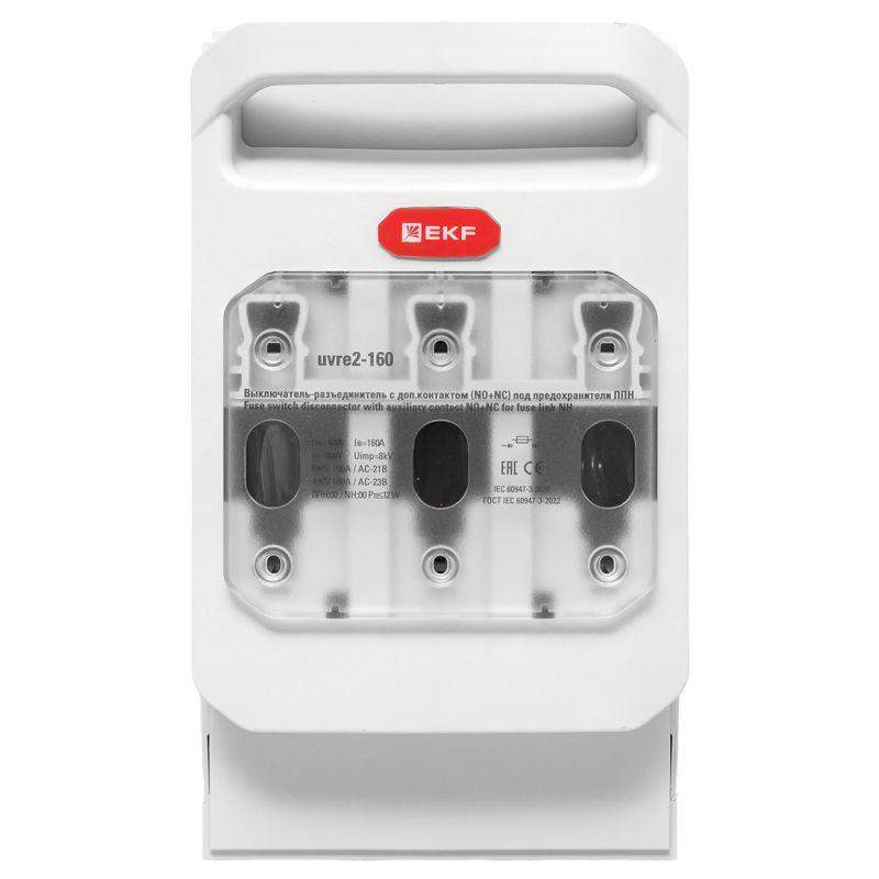 Выключатель-разъединитель УВРЭ v2 160А с доп. контактом (NO+NC) откидного типа под предохранители ППН (габ.00) EKF uvre2-160