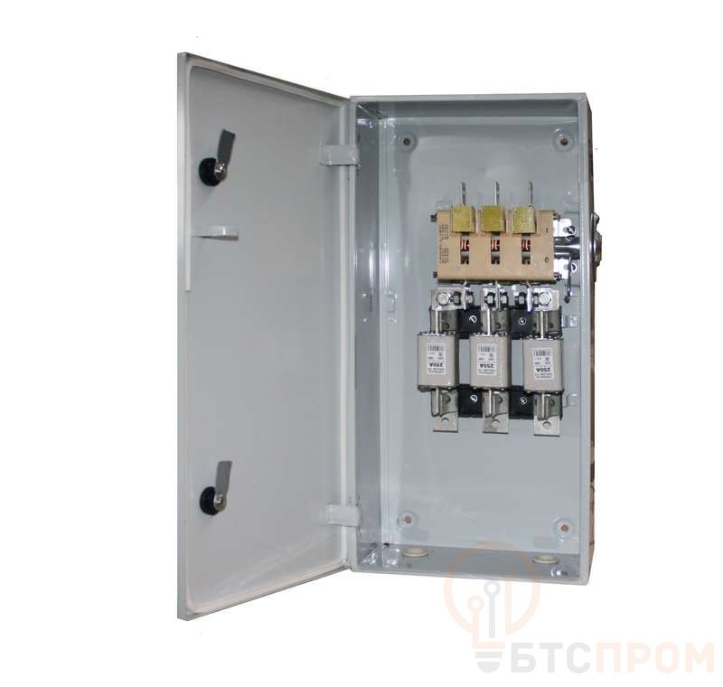 В ЯРП -250А IP 54 ручка в комплекте, съемная, не перекидная, вкладывается внутрь ящика. Ящик поставляется с предохранителем марки ПН-2 на 250А.