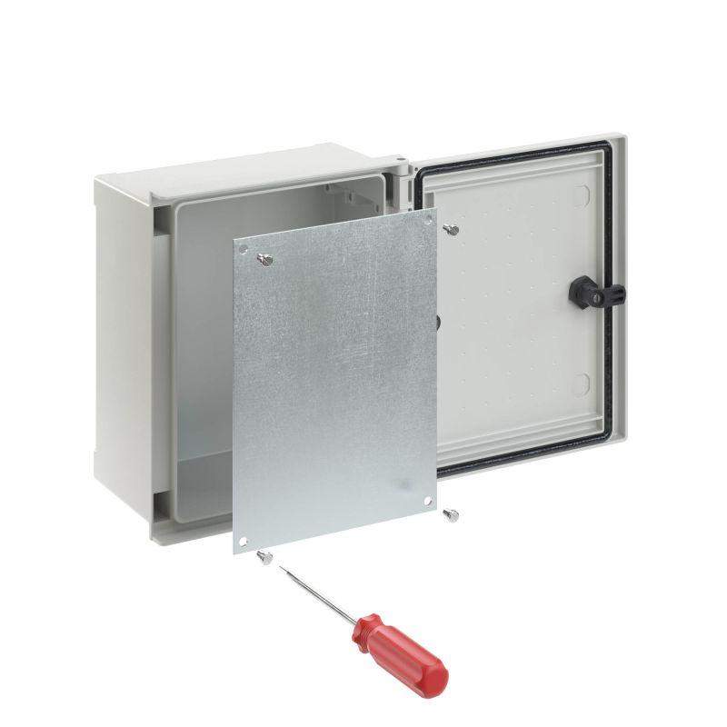 Монтажная панель предназначена для размещения оборудования внутри шкафа. Панель выполнена из оцинкованной стали толщиной 2 мм. Фактические размеры монтажной панели: ширина 198 мм, высота 262 мм.