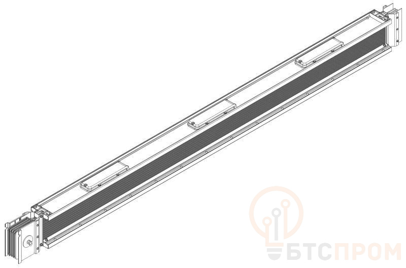 Секция прямая распределительная предназначена для организации фиксированных точек отбора мощности (подключение коробок отбора мощности) на разные номинальные токи по магистрали шинопровода, с тремя окнами отбора мощности